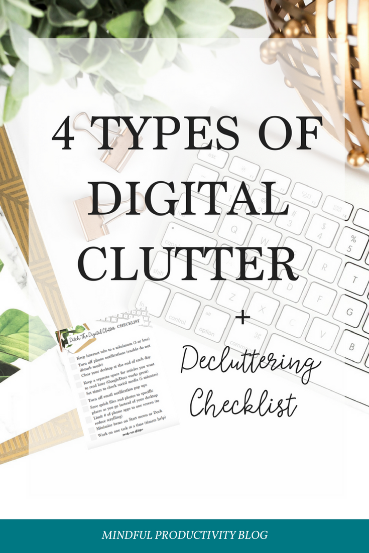 One of the first ways to start being more mindful of how you keep your digital and online space is to build your awareness around what these types of clutter are so you can call them out when they take over.